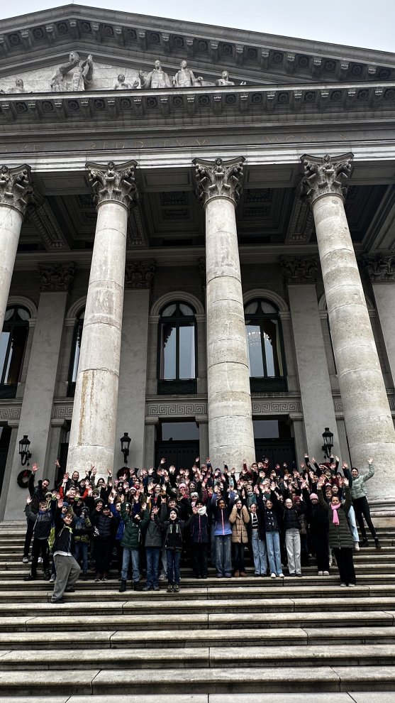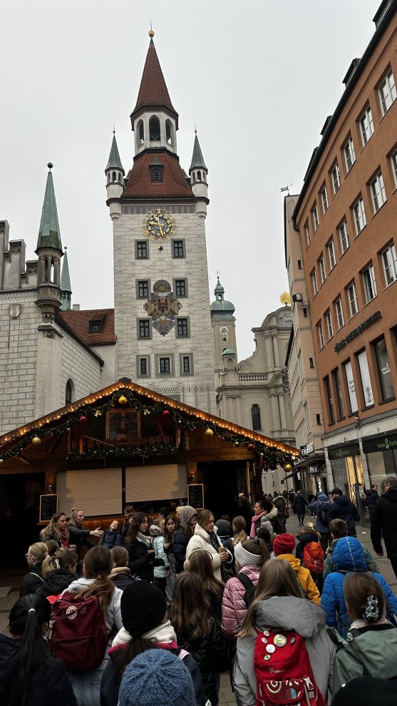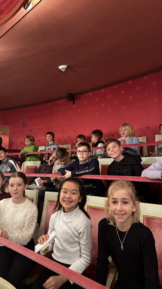 „Knusper, knusper, knäuschen, wer knabbert an meinem Häuschen?“ Diesen Satz kennt wohl jedes Kind. Er stammt aus dem Märchen „Hänsel und Gretel“ der Gebrüder Grimm, und es ist wohl eines der bekanntesten Märchen. Und die Geschichte ist so weit verbreitet, dass sich auch die Bayerische Staatsoper aktuell an eine tolle Inszenierung wagt. Ehrensache für unsere Fachschaft Deutsch, diese Inszenierung zu besuchen. Mit 110 Personen in die Oper – geht das? Klar! Die 5. Klassen des Gymnasiums Röhrmoos fuhren am Freitagvormittag gemeinsam nach München, um im Nationaltheater die Oper „Hänsel und Gretel“ zu besuchen. Für viele Kinder war das der erste Ausflug ins Münchner Opernhaus, es waren aber auch ein paar „alte Hasen“ dabei. Sichtlich beeindruckend war das Gebäude mit seiner opulenten Ausstattung. Die moderne Inszenierung von Humperdincks Stück durch Richard Jones verwandelte den Wald in ein mystisches Waldzimmer mit Geweihleuchter und Baumstatisten, das Knusperhäuschen in einen rotmundigen Schlund mit Riesenmuffin. Auch wenn einige Schülerinnen und Schüler die Abweichungen vom Märchen der Gebrüder Grimm überraschend fanden, zeigte die Aufführung aber einen neuen Zugang zu vermeintlich Altbekanntem. Als eindeutiges Highlight der Aufführung benannten die Fünftklässler das dritte Bild, bei dem die Hexe eine regelrechte Essensschlacht in ihrer Hexenküche veranstaltete. Diese sollte jedoch in der Schule nicht nachgeahmt werden; glücklicherweise gibt es in unserer Mensa selten Macarons und Wackelpudding.