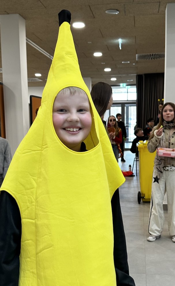 Bananen, Einkaufstüten oder ein Cheeseburger - mehr als kreativ waren die Kostüm-Ideen unserer Schülerinnen und Schüler zum ersten Schulfasching überhaupt. Auch am GMR ist die vielzitierte fünfte Jahreszeit nicht vorüber gegangen, und so hielt am letzten Schultag etwas Faschingstrubel Einzug. Vor allem in der zweiten Pause versammelten sich allerhand Kostümierte in der Aula, tanzten und jubelten ausgelassen miteinander und freuten sich sicher auch auf die bevorstehende, einwöchige Auszeit. Die Tutorinnen und Tutoren hatten als DJs für Partymusik gesorgt, zudem probierten sich viele im Stop-Spiel - bei so ausgelassener Stimmung war‘s aber schwierig, sich nicht zu bewegen.