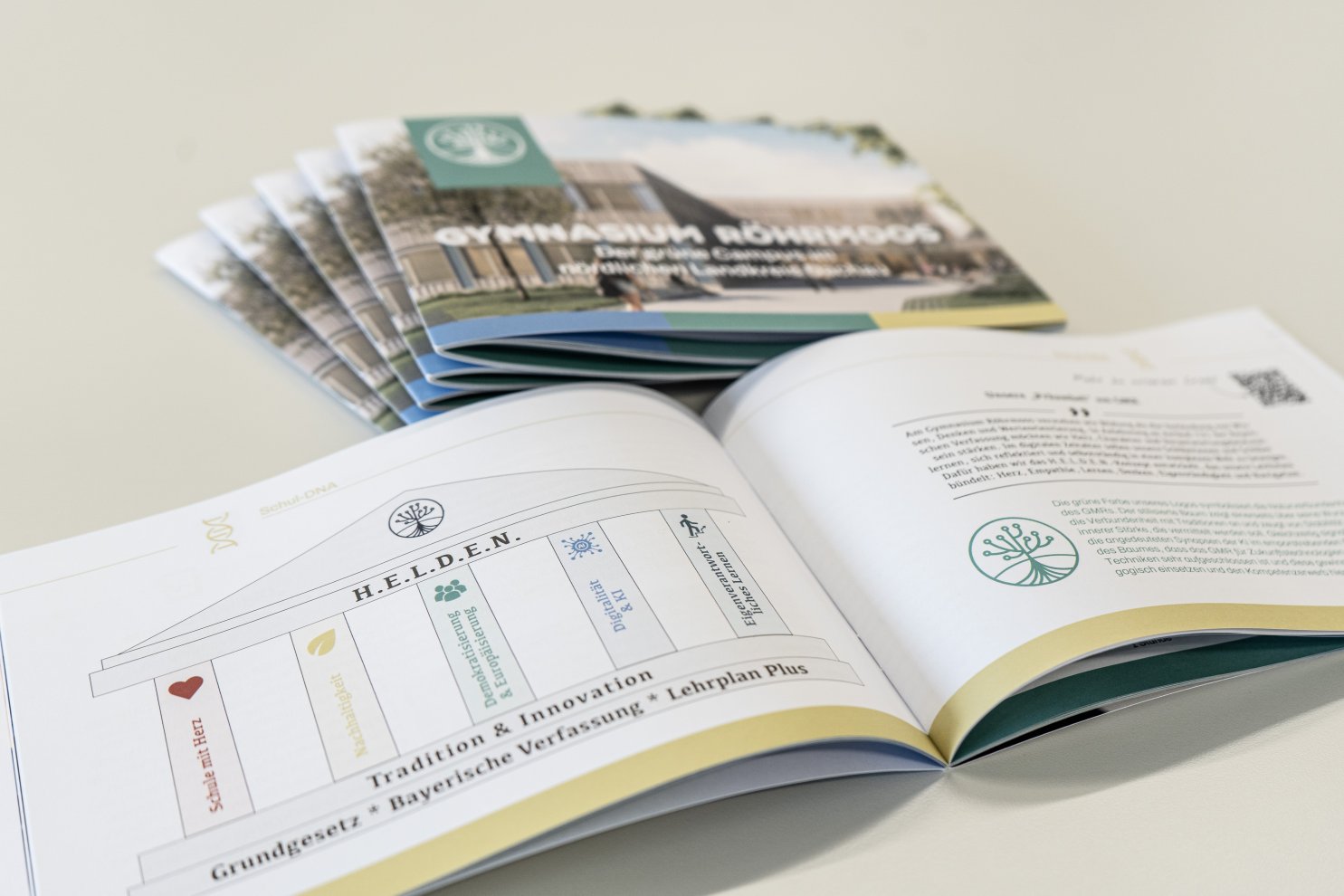 Was macht uns aus am Gymnasium Röhrmoos? Was ist unsere Schul-DNA, wofür stehen wir und was können die uns anvertrauten Schülerinnen und Schüler erwarten, wenn sie sich für das GMR als weiterführende Schule entscheiden? Das alles – und noch viel mehr – haben wir auf 44 Seiten in unserer allerersten Schulbroschüre zusammengefasst für interessierte Erziehungsberechtigte und Eltern, aber auch für euch, liebe Viertklässlerinnen und Viertklässler.